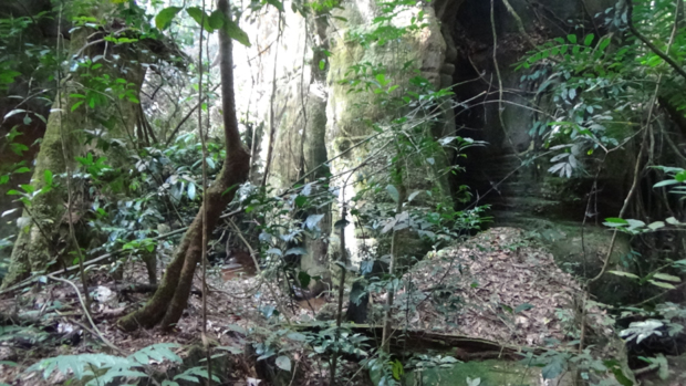 En poussant plus loin, au fin fond de la forêt, se trouve un site unique, composé de rochers traversés de grandes failles, de grottes, de lianes, et de végétation luxuriante. Ce site porte le nom d’Indiana Jones, en hommage au héros de Spielberg. En prenant garde aux trous, gouffres, et aux blocs en déséquilibre, vous pourrez parcourir ce dédale, en vous faufilant dans les trous et lézardes du rocher et, pour les plus courageux, en tentant quelques escalades sur liane. Attention, certains y ont laissé des lombaires ! Allez, c’est parti !