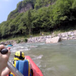 La Dranse est une rivière très abondante, comme tous les cours d’eau issus des massifs préalpins. Elle a un régime typiquement nival, avec cependant une petite composante pluviale. Elle présente des fluctuations saisonnières de débit bien marquées ; les hautes eaux se déroulent au printemps et sont dues essentiellement à la fonte des neiges. Elles s’accompagnent de débits mensuels moyens allant de 30 à 40 m3/s, d’avril à juin inclus. Et comme on aime bien l’eau froide, on s’est dit que ce serait intéressant de la descendre en canoraft… Allez, on va naviguer sur ce torrent!