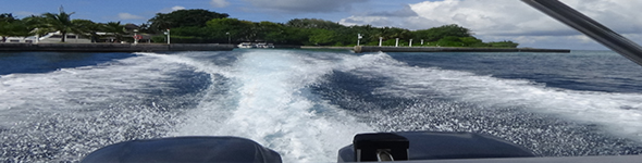 Bateau rapide et hors-bord. Les îles-hôtels des atolls de Malé Nord et Sud, ainsi que quelques-unes de l’atoll d’Ari, proposent un transfert en hors-bord, qui coûte entre 50 $US (38 €) et 300 $US (230 €) l’aller-retour en fonction de la distance. Ce montant est généralement inclus dans le cas d’un package, mais il est facturé aux voyageurs indépendants à leur départ du resort. Les bateaux se présentent sous diverses formes, du petit runabout équipé d’un moteur hors-bord à la grande vedette à plusieurs ponts, dotée d’une cabine de pilotage semblable à celle d’un avion.